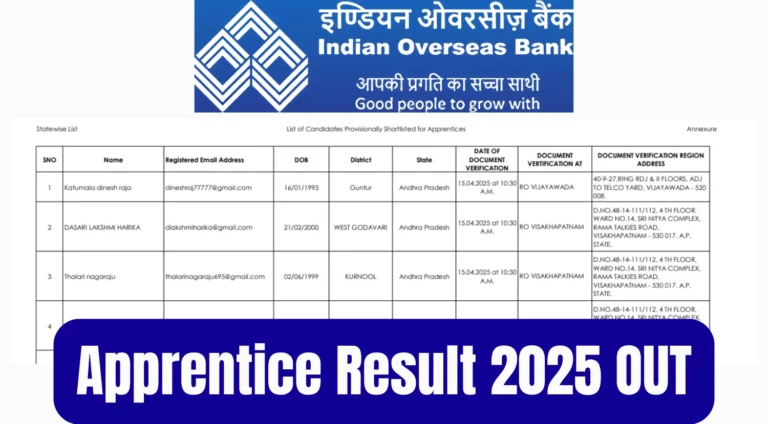 APNIJOB On Telegram : Join Now Post Name : Overseas Bank 750 Apprentice Exam Result 2025 About Post : Indian Overseas Bank Apprentice Result