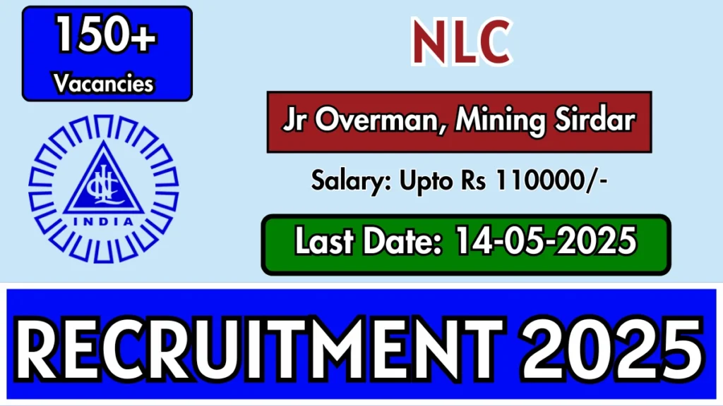 APNIJOB On Telegram : Join Now Post Name : NLC 171 Jr Overman, Mining Sirdar Online Form 2025 About Post : Neyveli Lignite Corporation