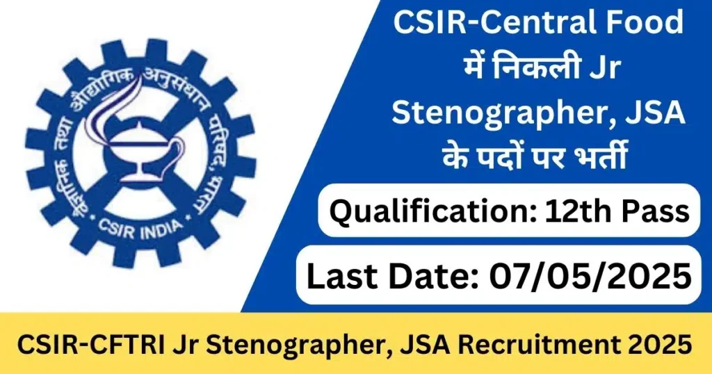 APNIJOB On Telegram : Join Now Post Name : CSIR-CFTRI Jr Stenographer, JSA Online Form 2025 About Post : The CSIR-Central Food Technological Research