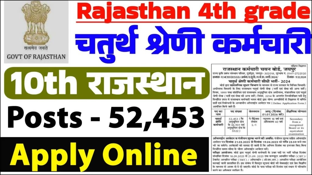 APNIJOB On Telegram : Join Now Post Name : RSMSSB 53749 Group D Vacancy Online Form 2025 About Post : Rajasthan Staff Selection